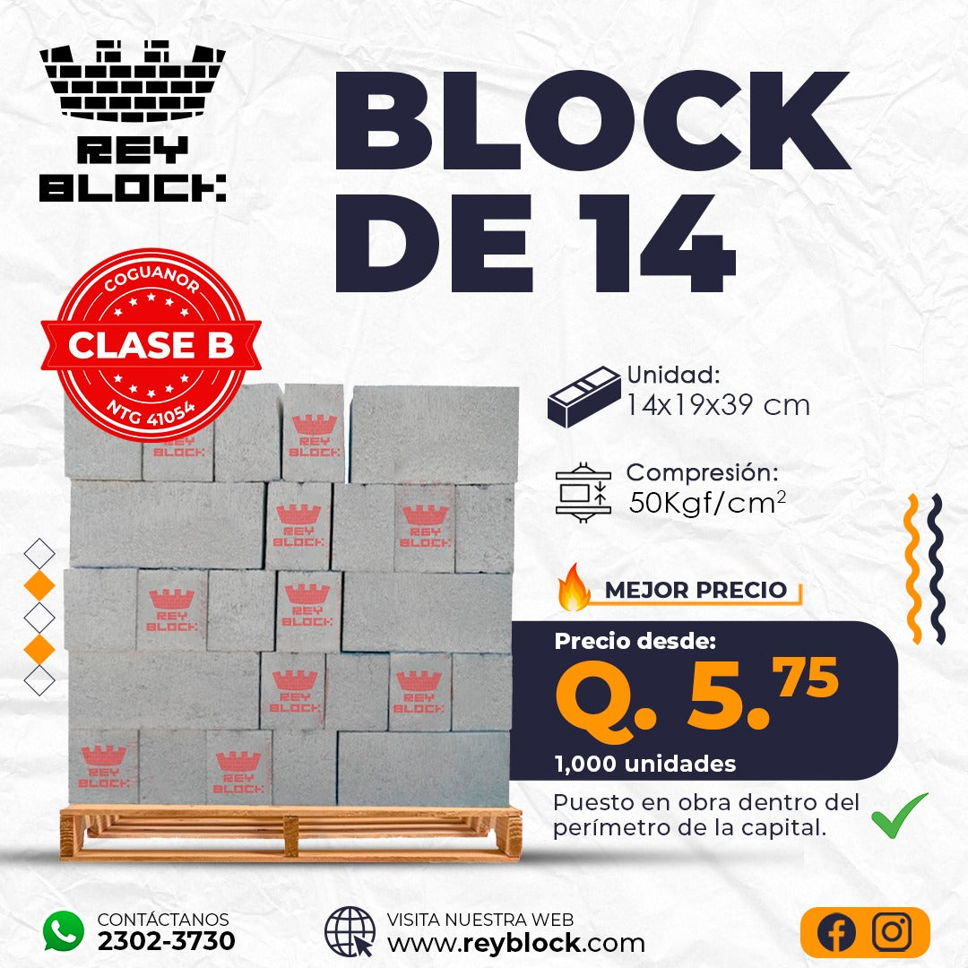 Block de 14x19x39 cm con resistencia a la compresión en el área bruta de 50 Kg / cm2 .